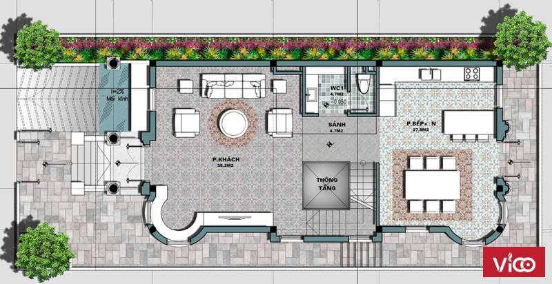 Xây 3 tầng nổi, 1 tầng hầm và 1 tầng mái theo lối kiến trúc cổ điển kiểu Pháp và Hy Lạp mang lại cho chủ nhân sở hữu nhưng giá trị vượt thời gian.