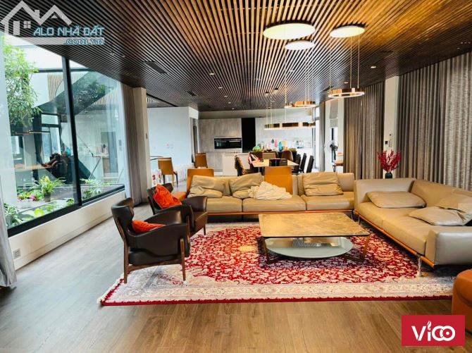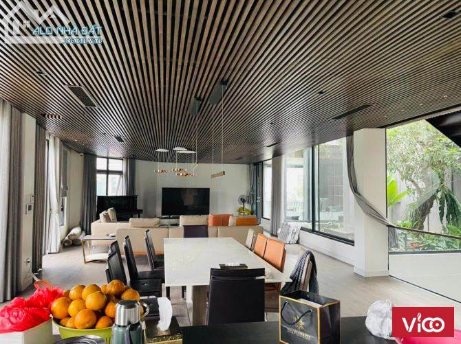 Căn biệt thự được thiết kế nội thất xịn xò, có sân vườn, chòi nghỉ thiết kế theo phong cách Nhật Bản. Nội thất trong nhà thiết kế theo phong cách Châu Âu hiện đại.