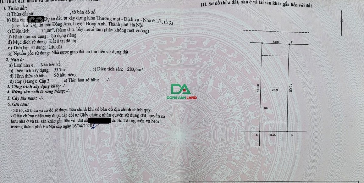 Bán căn liền kề dự án Happy Land Đông Anh: