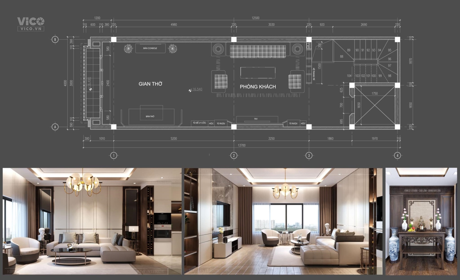 + Tầng 5: Phòng khách + Bếp + 1 WC