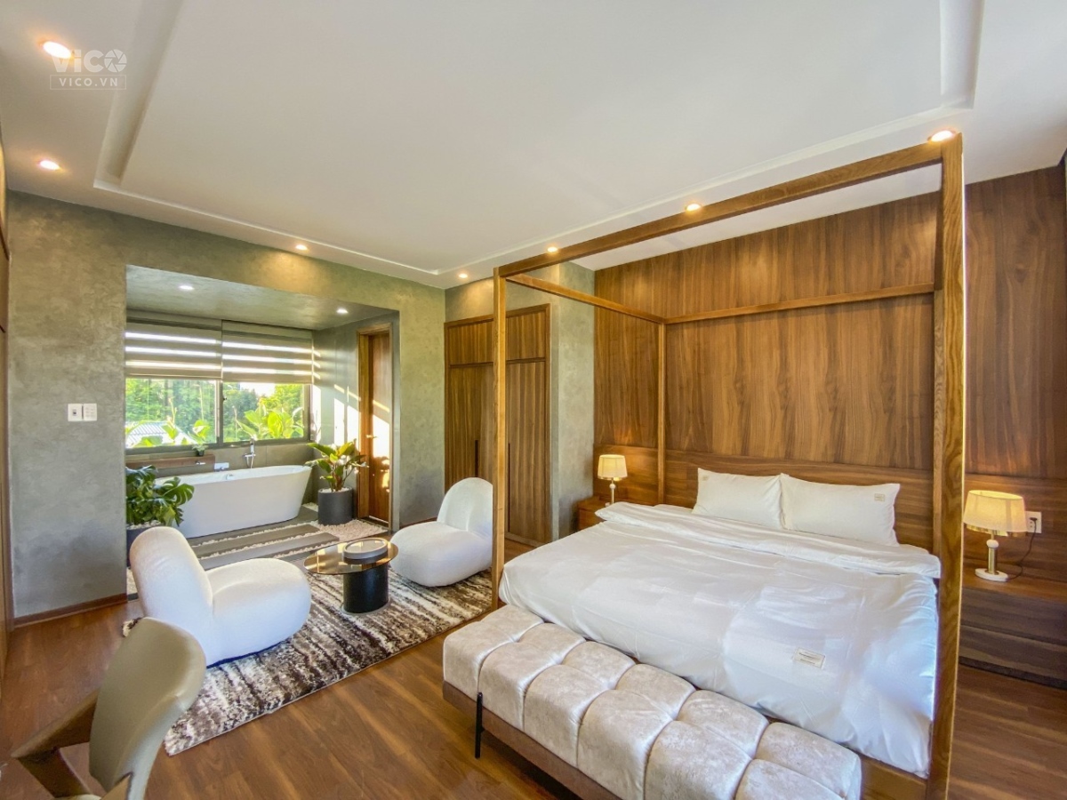 + Công năng: Villa có 4 phòng ngủ, 5wc, sân phơi, hồ bơi, phòng xông hơi, gara ôtô. Đầy đủ tiện nghi, công năng khỏi bàn, có phòng thờ, phòng gym, hồ cá koi.