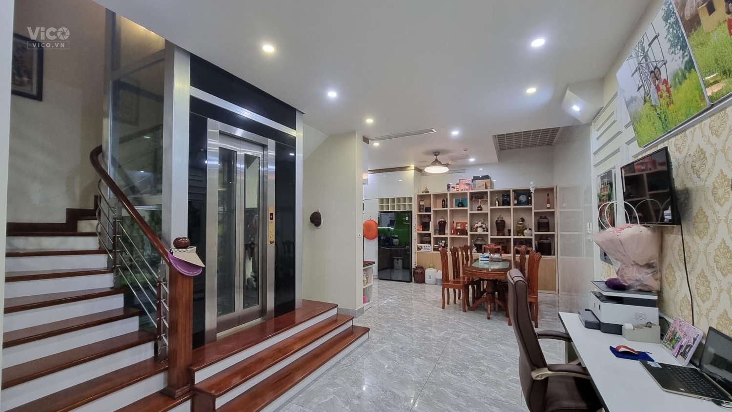 - Căn Bt nằm ở vị trí ngõ thông Hồng Tiến, Hồng Như Tiếp. Diện tích 101m2, xây 5 tầng, MT 6,1m