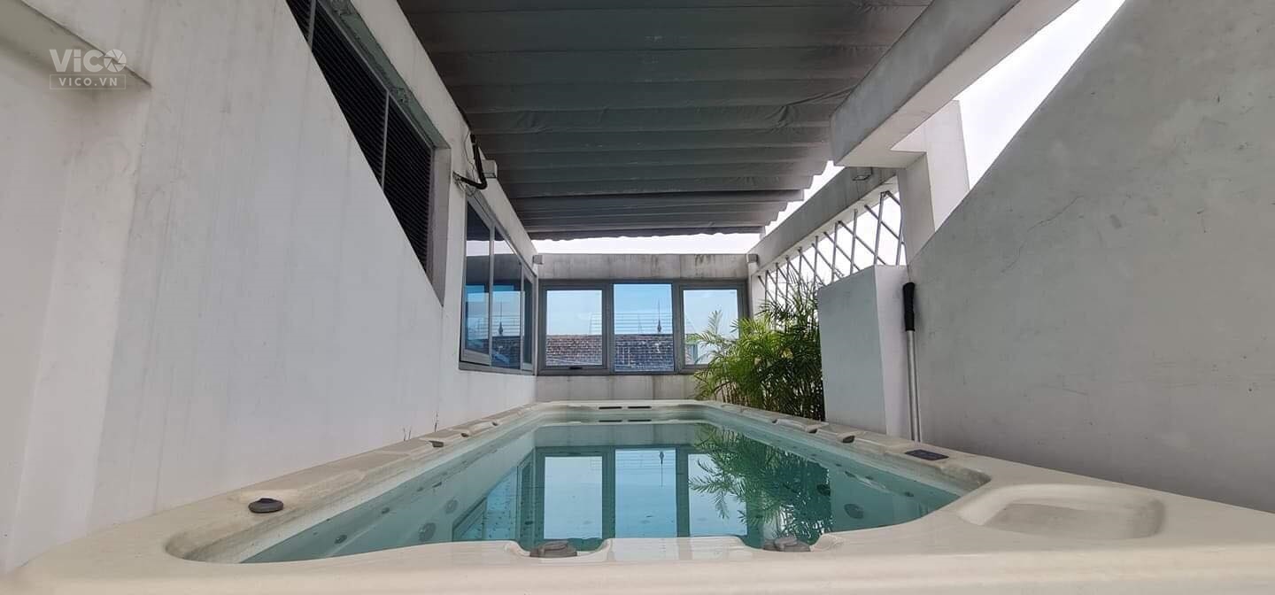 Tầng 5: Bể bơi, khu ngoài trời, phòng tắm và thay đồ.