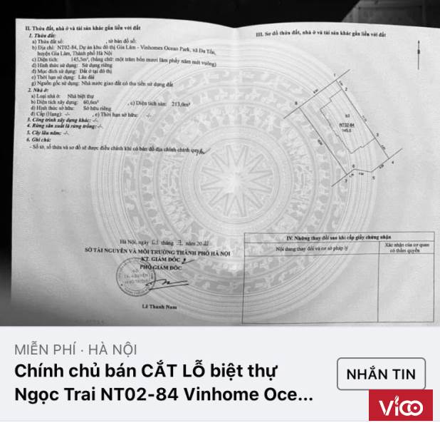 CHÍNH CHỦ CẦN TIỀN BÁN CẮT LỖ BIỆT THỰ NGỌC TRAI NT02-84 VINHOME OCEAN PARK Liên hệ: 0913564528