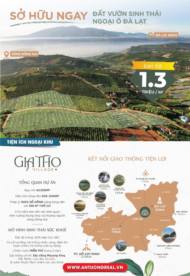 - Vị trí:xã Đan Phượng, huyện Lâm Hà, tỉnh Lâm Đồng ( nằm ngay trên đồi với cảnh quan nhìn xuống thung lũng thượng nguồn sông Đồng Nai; khu vực ngoại ô cách Đà Lạt tầm 60km di chuyển )