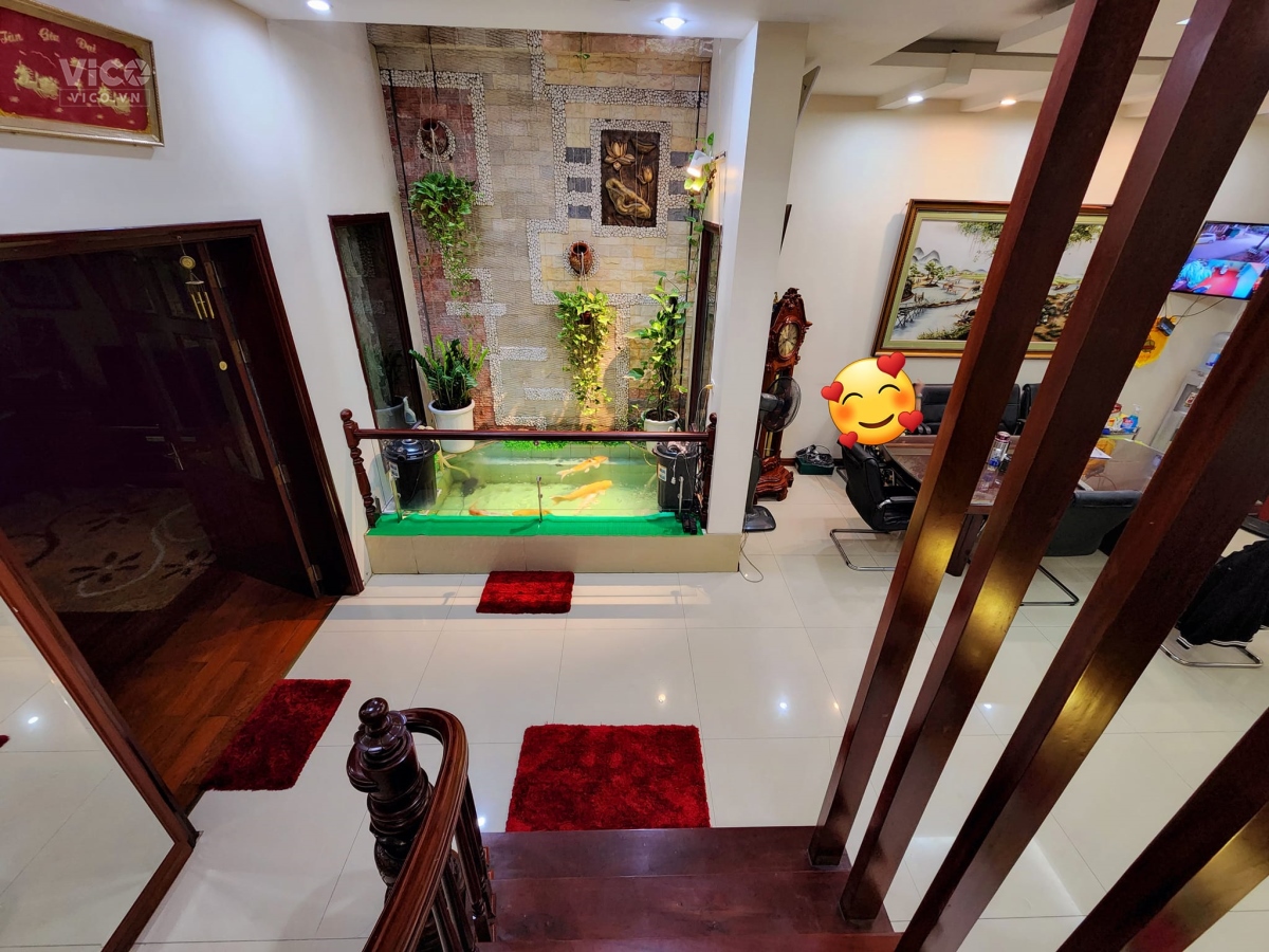 + Nhà khung cột chắc chắn, sau nhà có thoáng, cầu thang và wc giữa.
