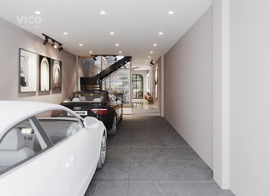 + Tầng 1: Ga ra ô tô + Phòng Khách nhỏ + Sân sau + WC