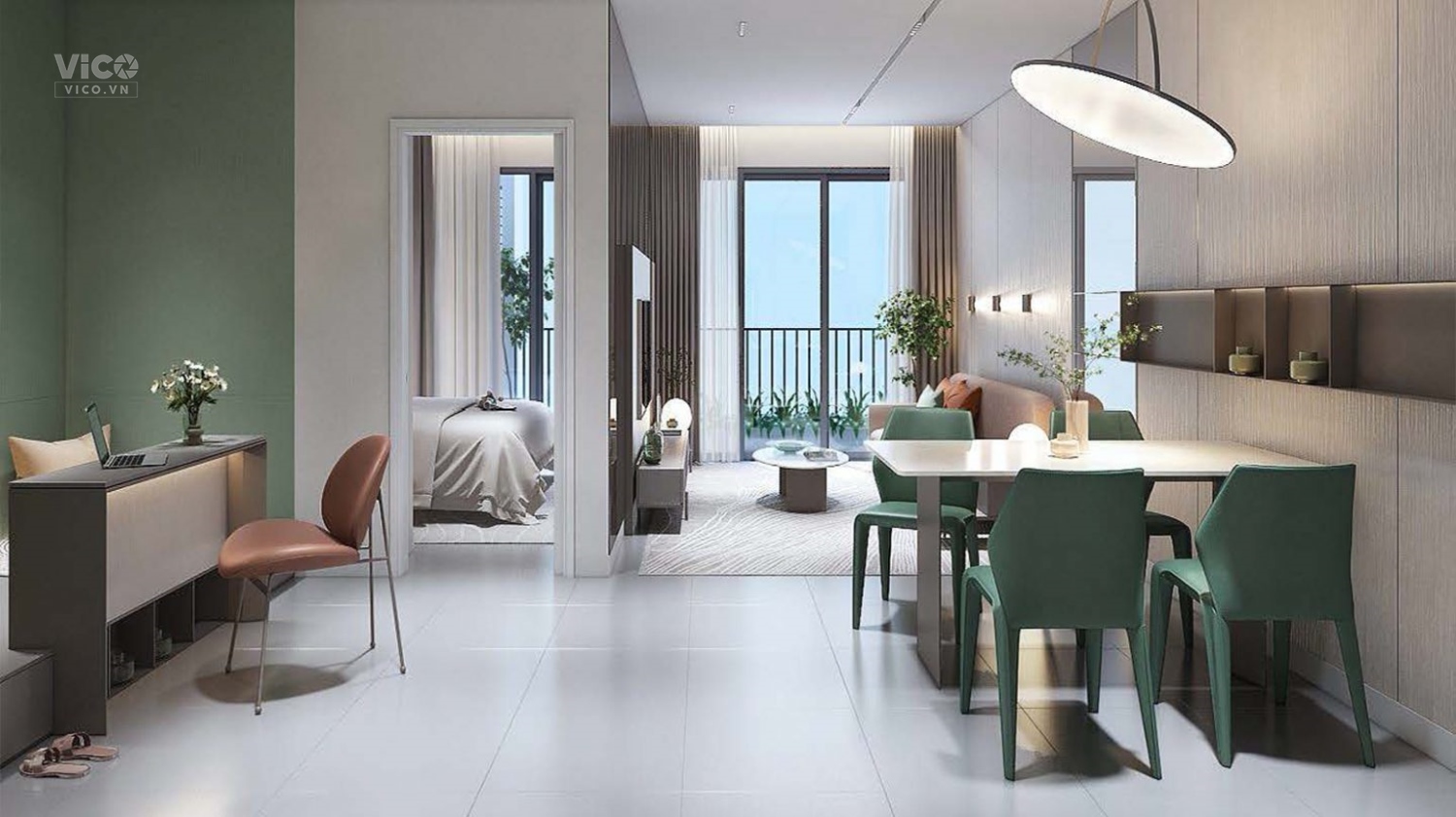 Bán căn 2PN (70m2). Ban công view hướng Nam trực diện sông.