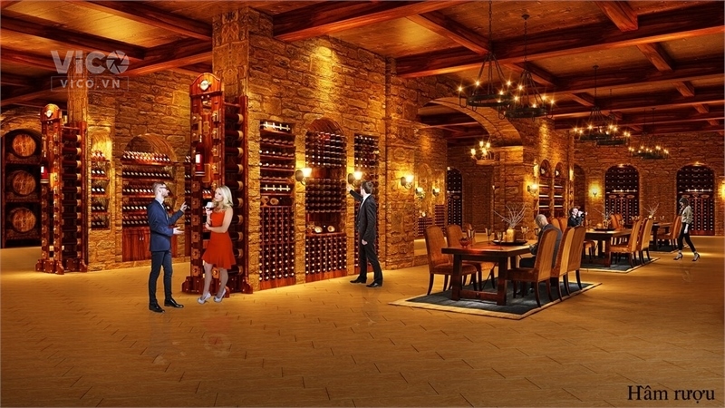 - 1 tầng hầm rượu vang kết hợp nhà hàng Á Âu.