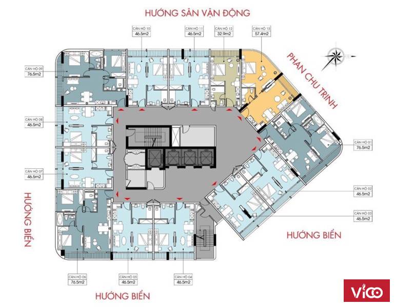 Thiết kế căn hộ chuẩn Studio Apartment hiện đại, bàn giao full nội thất chuẩn Âu, diện tích đa dạng: 1-2 Pn ( 44 -76,5 m2 )