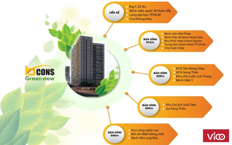 - MUA BCONS GREEN VIEW bạn có thể: Nhìn về Sân Bay, Tuyến Metro, Bến Xe Miền Đông mới, Trung Tâm Q1, Bitexco, Hồ Đá, Làng Đại Học…