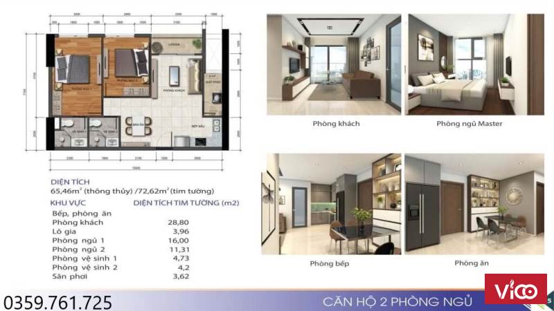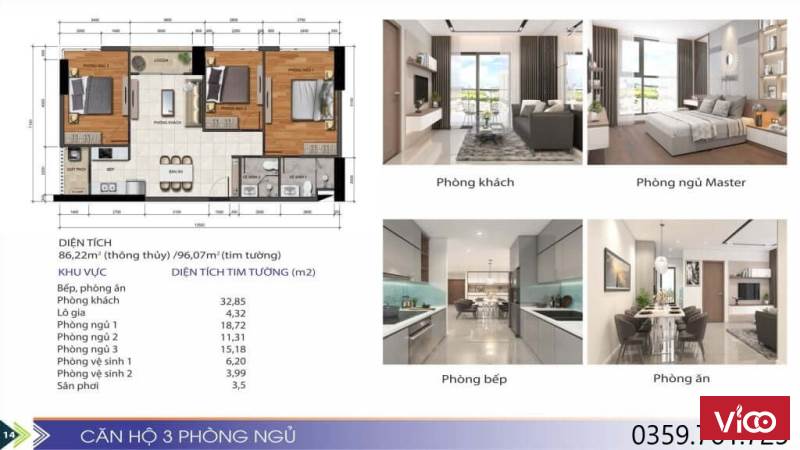 🔔 Diện tích: 52m2 – 72m2 – 96m2 (1PN-2PN-3PN)