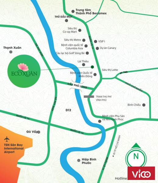 - Cạnh trung tâm thương mại AEON Mall, Lotte Mart, Golf & Resort Sông Bé, MM Mega, BV Quốc tế Becamex, BV Quốc tế Columbia Asia …