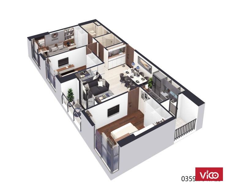 • Diện tích: 52m2-72m2-96m2 (1PN-2PN-3PN)