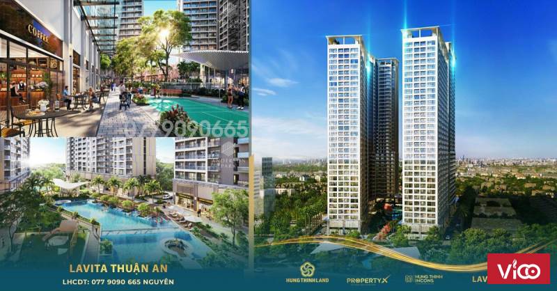 Thông tin dự án.- Chủ đầu tư: Hưng Thịnh Land.- Vị trí: Mũi tàu Đại lộ Bình Dương - Nguyễn Thị Minh Khai, Thuận Giao, Thuận An.- Pháp Lý: Đầy đủ, sổ hồng lâu dài, bao gồm cả officetel.- Ngân hàng hỗ trợ cho vay 70% tới 20 năm, ân hạn nợ gốc và hỗ trợ lãi suất.(Chỉ cần thanh toán 30% - 70% còn lại nhận nhà thanh toán tiếp).- Mô hình:Lavita Thuận An bao gồm khu phức hợp thương mại shophouse, căn hộ và officetel.- Officetel: 35 - 51m2 giá 1,3 - 1,6 tỷ.- Căn 1PN: 39 - 50m2 giá 1,4 - 1,6 tỷ.- Căn 2PN: 69 - 73m2 giá 2,3 - 2,5 tỷ.- Căn 3PN: 88 - 90m2 giá 3 tỷ.+ Tiện ích nội khu chuẩn resort 5*:- Công viên vườn nhiệt đới rợp bóng cây xanh trong nội khu 2300m2, cùng hệ thống đài phun nước đẹp mắt ngay cổng chào khu căn hộ.- Hồ bơi 2 tầng thiết kế theo phong cách resort.- Sky Garden ở tầng 38 cho cư dân ngắm trọn toàn cảnh thành phố.- Trung tâm thương mại và chuỗi nhà hàng ẩm thực.- Phòng tập gym & yoga cùng khu thể thao ngoài trời đa năng.- Khu vui chơi trẻ em nằm trong nội khu đảm bảo an ninh cho các bé thỏa sức vui đùa, sáng tạo.- Hơn 50% thiết kế tòa nhà được bao phủ bởi lớp kính cường lực (ngăn tia UV), tạo thêm sự sang trọng hơn và cao cấp hơn cho các tòa tháp. Bên trong bàn giao các thiết bị từ các tập đoàn lớn như: Hafale, Malloca, Panasonic, An Cường.+ Tiện ích ngoại khu:Chỉ vài phút di chuyển đến.- Aeon Mall 2Km.- Khu công nghiệp: Vsip, Việt Hương, Sóng Thần 1, 3 - 5km.- Tuyến Metro số 5 đi qua dự án.- Một Vịnh Xanh giữa lòng phố thị.- Nơi cuộc sống bình yên giữa thiên nhiên thuần khiết.