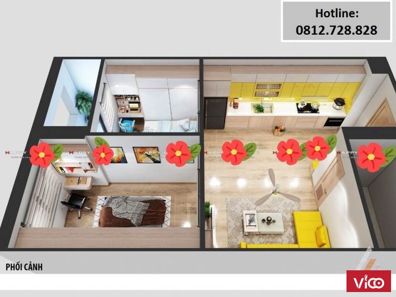 - Căn hộ thiết kế thông minh, diện tích 54m2 thiết kế 2 phòng ngủ + 1 vệ sinh