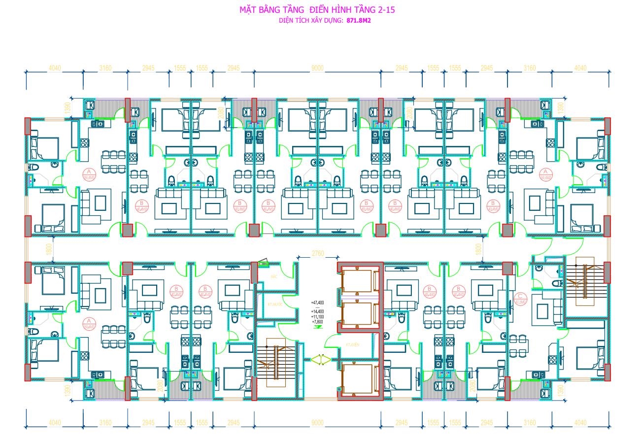 Diện tích đa dạng từ 40 - 60m2.