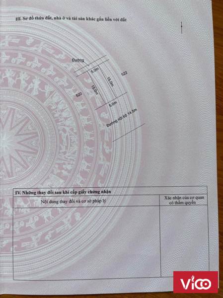 Lô đất 2 mặt tiền trước sau, đường phía trước rộng 14.5m, đường phía sau rộng 2m.