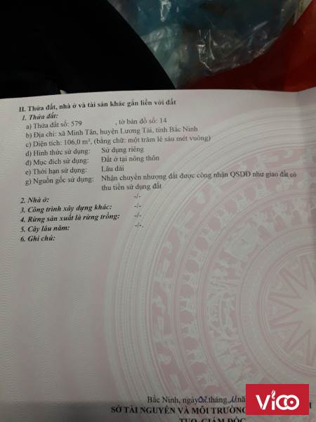 Cần bán đất tại Nhất Trại, Minh Tân, Lương Tài, S106m, MT5m