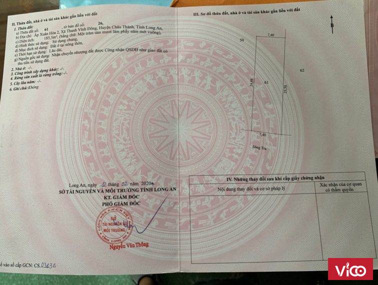 Cần bán đất tại xã Thanh Vĩnh Đông- Châu Thành – Long An