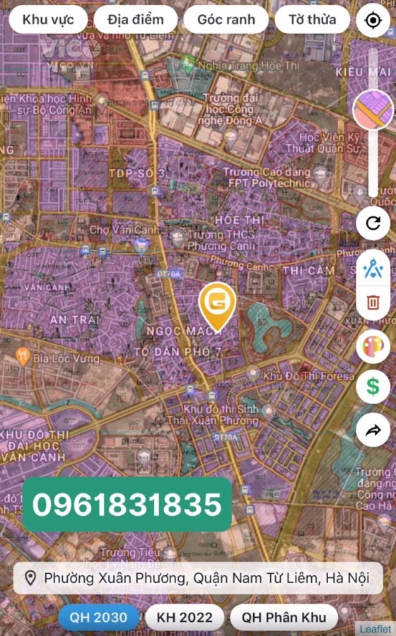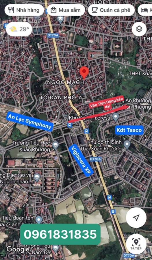 Chính chủ bán lô đất tại Xuân Phương đường 70, gần ngay KDT Tasco, hồ điều hoà và đường Văn Tiến Dũng kéo dài