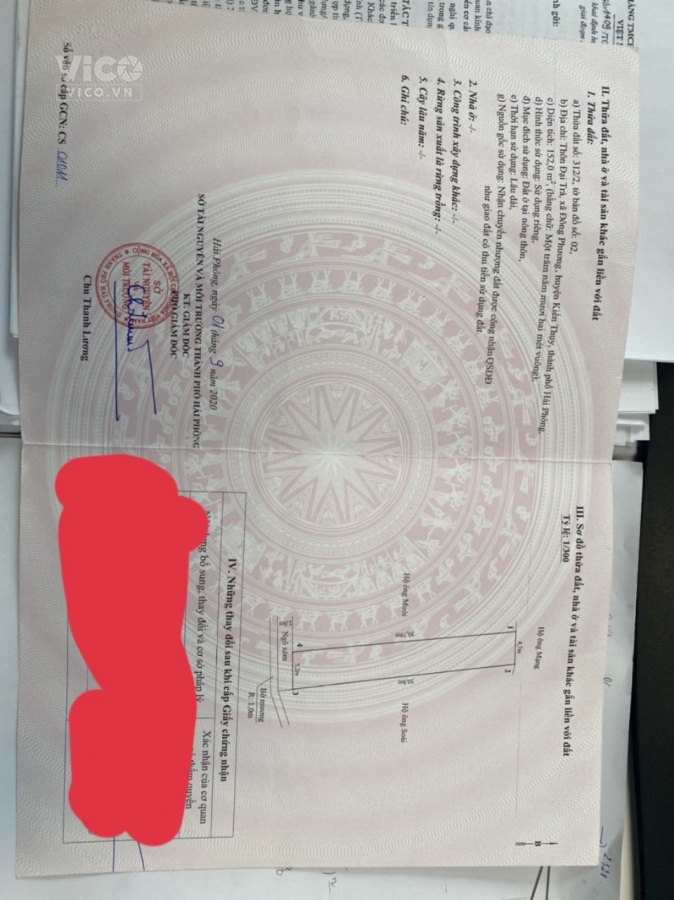 Chính Chủ Cần Bán Lô Đất Vị Trí Đẹp Tại Kiến Thụy , Hải PhòngĐịa Chỉ: Thôn Đại Trà, Xã Đông Phương, Huyện Kiến Thụy, Hải PhòngDiện tích: 400m2 (Đã tách thành 2 sổ: 248m2 và 152m2 )Giá bán: 6 tỷLiên hệ: 0962985979 hoặc 0886917691Đất không giáp mương, cao ráo thoáng mátPháp lý minh bạch,Sổ đầy đủ, có thể công chứng ngay.Gần trường học, chợ, trạm y tế, cách ủy ban xã khu trung tâm nhiều tiện ích quán xáLiên hệ để xem và mua nhanh nhất!!! Mong tiếp khách thiện chí