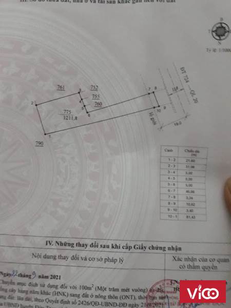 - Diện tích: 1211m2, sẵn 100m2 thổ cư