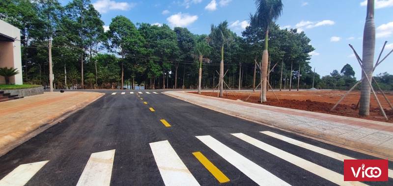Đường nhựa rộng 14 - 24m vỉa hè cây xanh ốp đá hoa cương mỗi bên 3m.