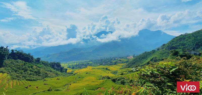** View ruộng bậc thang và rừng già đẹp xuất sắc.
