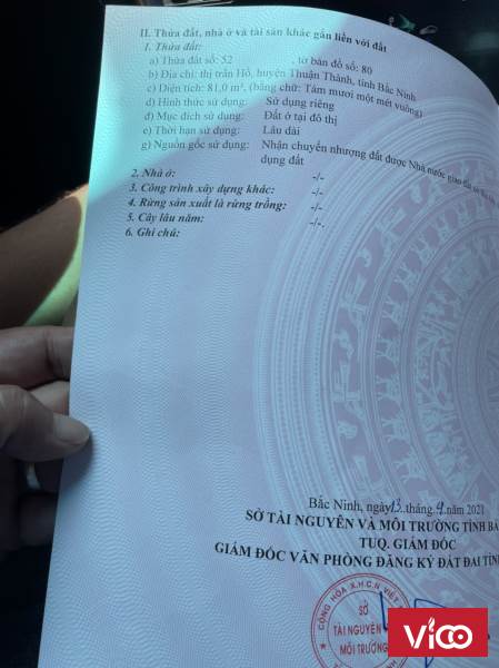 Nhập khẩu ngay trung tâm Thị Trấn Hồ, Thuận Thành, Bắc Ninh, giá công khai 2ty8