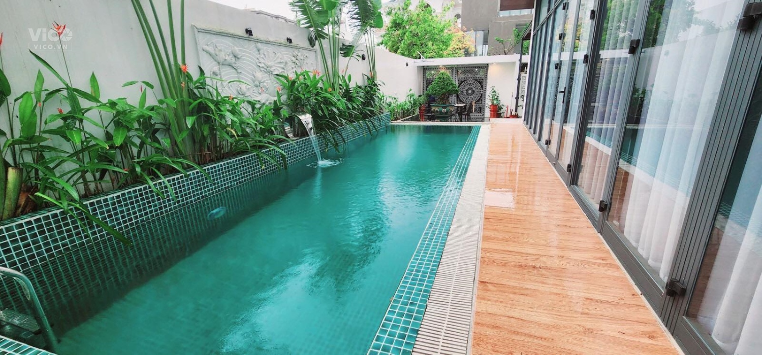 _ Tầng 1: Sân xe, Hồi Bơi, Khách, Bếp, 2PN, 2WC.