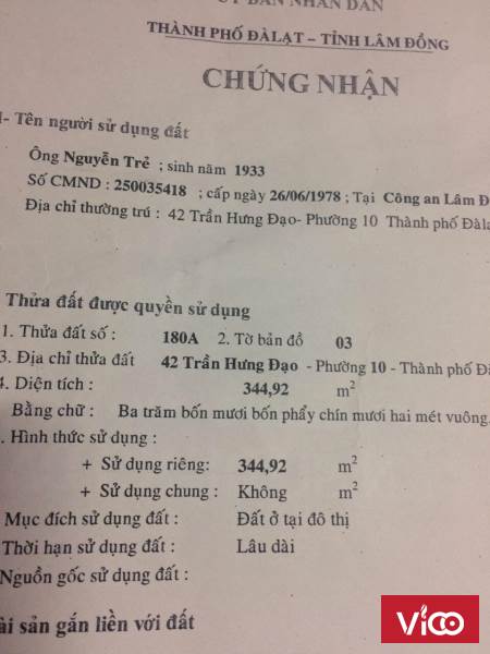 Bán Nhà Mặt Tiền Đường Trần Hưng Đạo-Phường 10-TP Đà Lạt-Lâm Đồng
