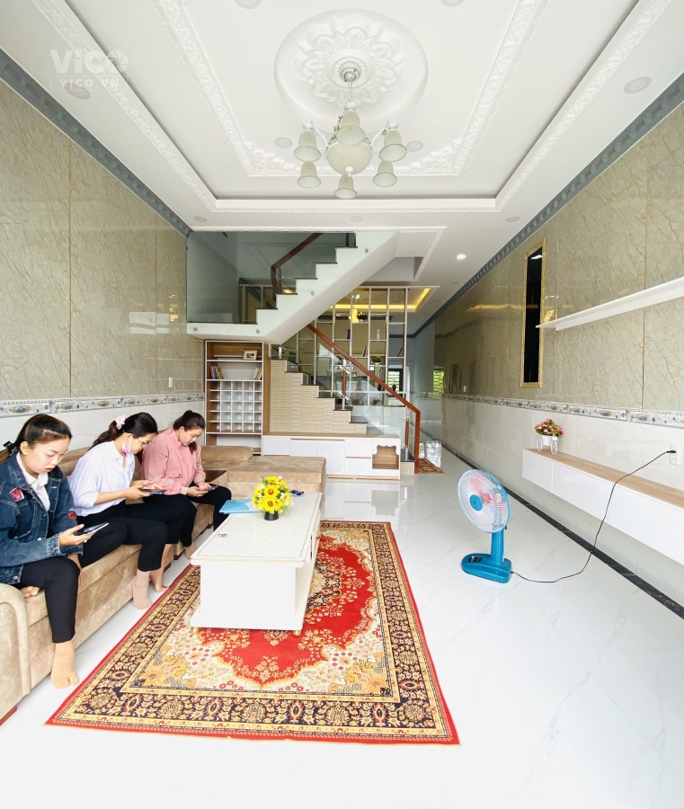 -Nhà hoàn thiện 100% nội thất đúc thật trần thạch cao, sàn gỗ. sân trước sau thông thoáng có giếng trời