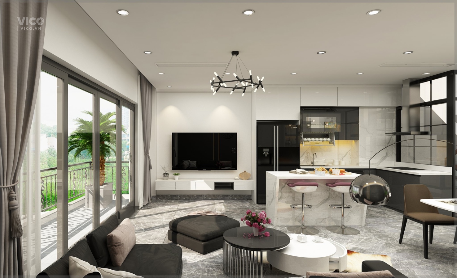 + Tầng 4: Bếp + phòng khách.
