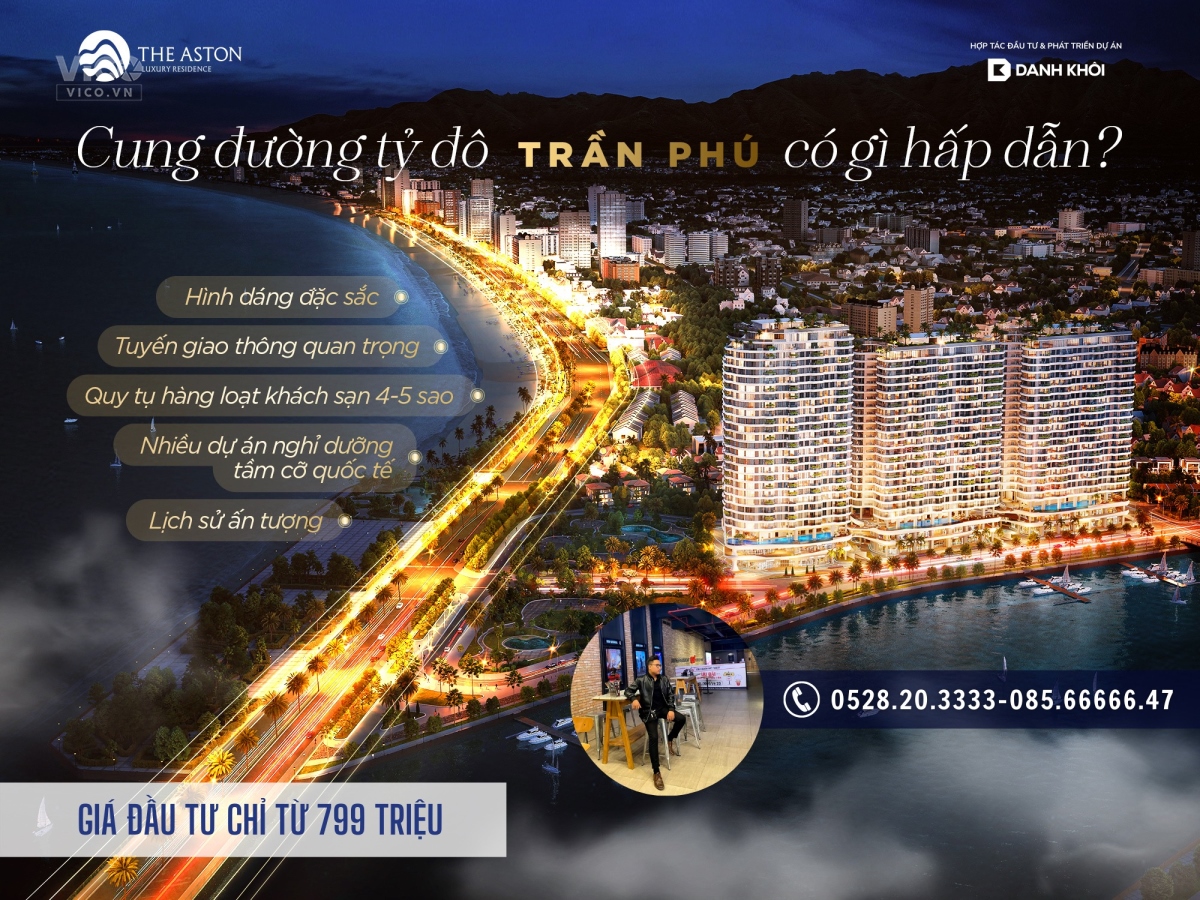 - Vị trí đắc địa , độc tôn tạo ra đặc điểm khác biệt gia tăng tiềm năng dự án. Ngoài ra, dự án THE ASTON LUXURY RESIDENCE có số lượng giới hạn và sẽ là biểu tượng của TP.Nha Trang trong tương lai, kết hợp với lối sống WELLNESS - cam kết đến quý khách hàng rằng môi trường sống tại dự án sẽ là nơi có 102 tại TP.Nha Trang này...!