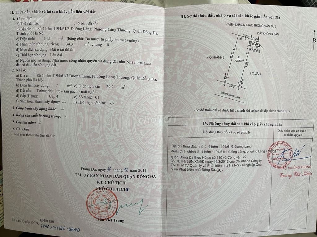 Chính chủ cần bán căn nhà tại địa chỉ số 4 ngách 61/1 ngõ 1194 đường Láng ( phía giáp Cầu Giấy)- Láng Thượng – Đống Đa – Hà Nội.