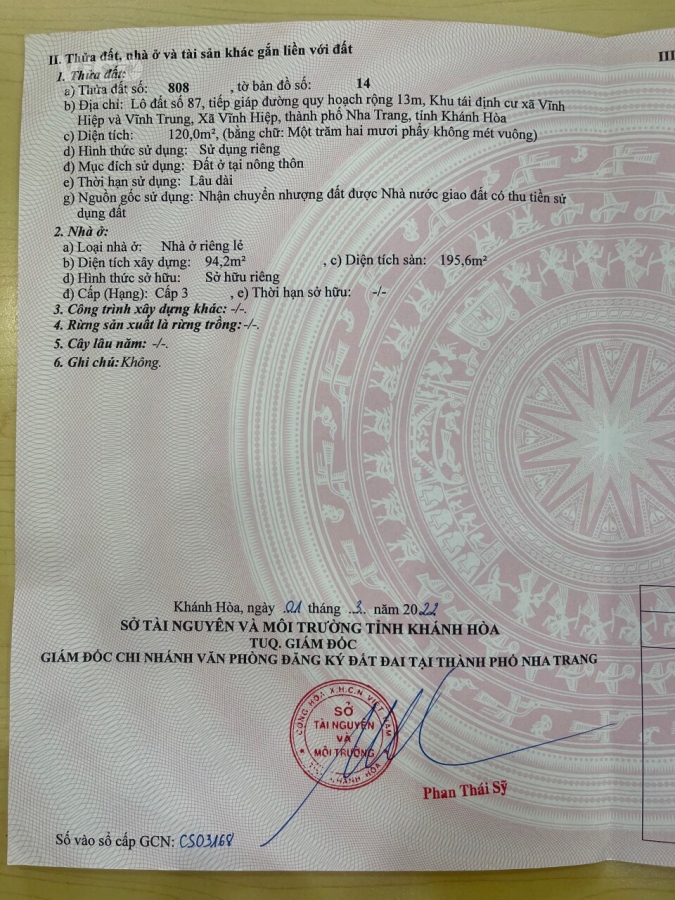 Thông tin tóm tắt: Bán Căn Nhà Tái Định Cư Vĩnh Hiệp Nha Trang Diện Tích 120m² Giá 3ty2