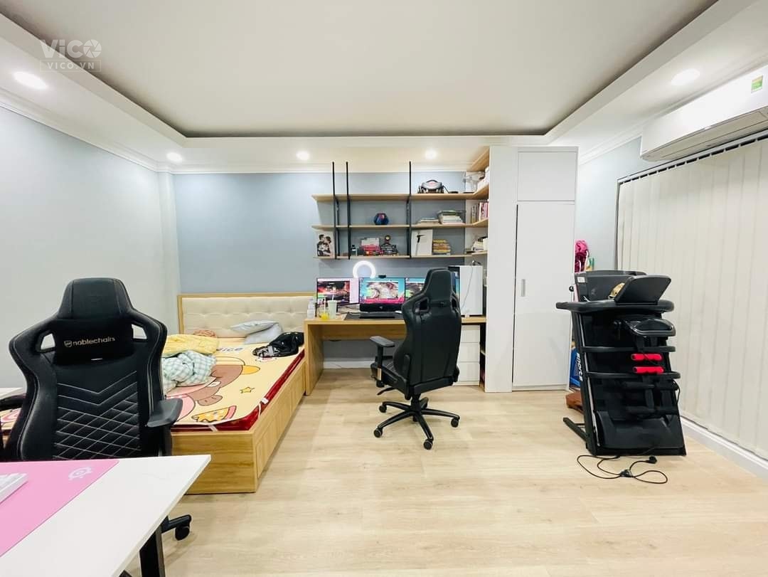 Nhà 5 tầng mới đẹp long lanh, nội thất xịn sò, đồng bộ đẹp. Mặt tiền rộng, phía sau để lại khe thoáng rất thông thoáng.