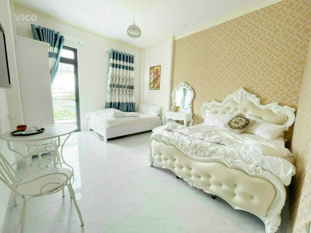 Công năng 1 trệt 3 lầu. Mới xây, 5 phòng ngủ. Đường nhựa ô tô né nhau. Sân đậu ô tô. Sổ riêng xây dựng. Trung tâm thành phố.