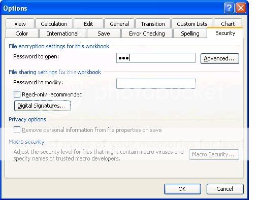 Đặt password cho Excel 2003