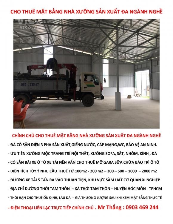 CHÍNH CHỦ CHO THUÊ MẶT BẰNG NHÀ XƯỠNG SẢN XUẤT ĐA NGÀNH NGHỀ