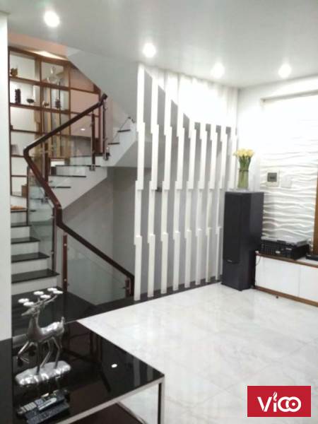 -Nhà 1 trệt 3 lầu được thiết kế sang trọng hiện đại gồm 4 phòng ngủ,5wc, thoáng 3 mặt ,để được 2 ô tô trong nhà, có sân nhỏ và cửa sau