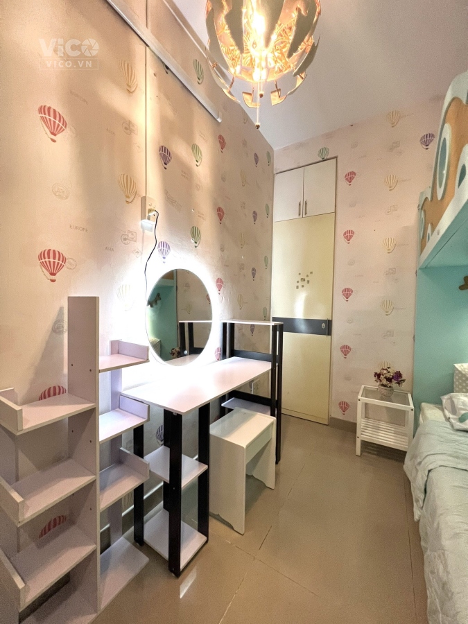 - Phòng full nội thất: Giường tầng, nệm, tủ quần áo, bàn làm việc, kệ, máy giặt, bếp chung