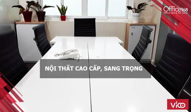 * Phòng được trang bị đầy đủ bàn ghế, điện thoại bàn, sàn lót thảm, kính cường lực, cách âm, tủ kệ hồ sơ, sử dụng các thiết bị văn phòng chung như máy fax, máy photocopy, máy scan. Phòng họp chung hiện đại: máy chiếu, WIFI, bảng,…"