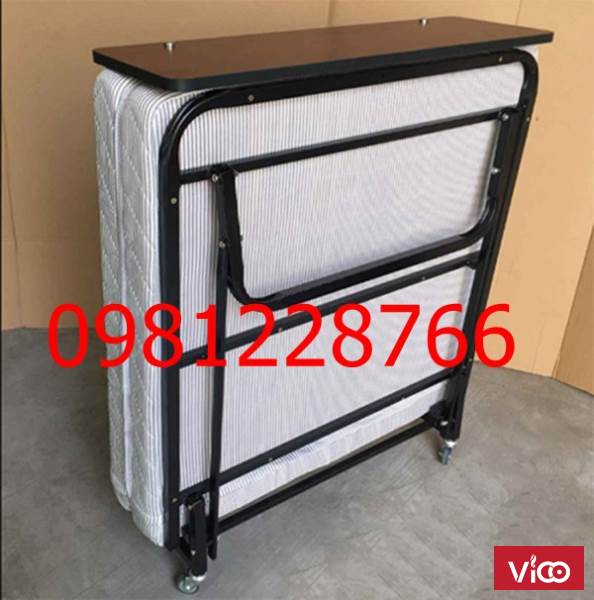 Giường phụ có bánh xe di chuyển nhẹ nhàng, có thể gấp gọn sau khi sử dụng.