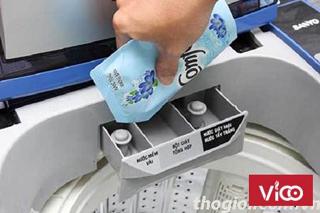 Ngăn chứa thường có 3 ngăn: ngăn thứ nhất chứa nước tẩy, ngăn thứ 2 chứa bột giặt và ngăn thứ 3 chứa nước xả. Khi kéo ngăn ra, bạn sẽ thấy 3 ngăn và bạn lần lượt cho các thứ vào các ngăn đó.