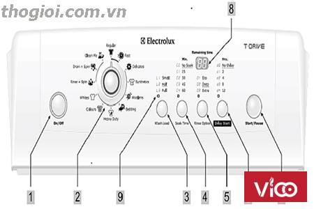Các nút chức năng của máy giặt Electrolux.