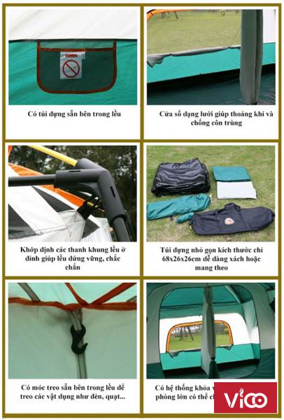 - Đây là loại lều cắm trại được thiết kế 3 khoang ( 5-8 người )
