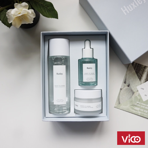 - Ngay sau khi ra mắt bộ 3 sản phẩm có tính năng đột phá trong việc chăm sóc và cải thiện sức khỏe da, Huxley đã nhận được nhiều sự quan tâm của người tiêu dùng, được nhiều tạp chí làm đẹp đánh giá cao về hiệu quả cải thiện rõ rệt cho làn da. - Bộ Dưỡng Ẩm Và Làm Dịu Da Cao Cấp Huxley Hydration Trio Skincare Set với chiết xuất từ hạt xương rồng hữu cơ, có chứa chất Aquacacteen.