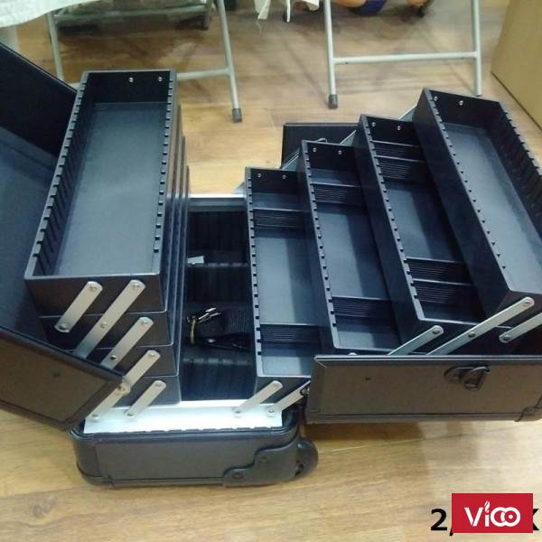 - Đi kèm cốp có các thanh chia ngăn trong từng khay giúp dễ dàng sắp xếp và tìm kiếm đồ trang điểm